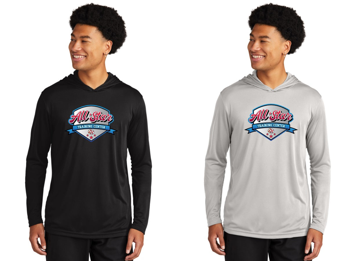 Stay comfortable and stylish with our light weight hooded long-sleeve shirt.